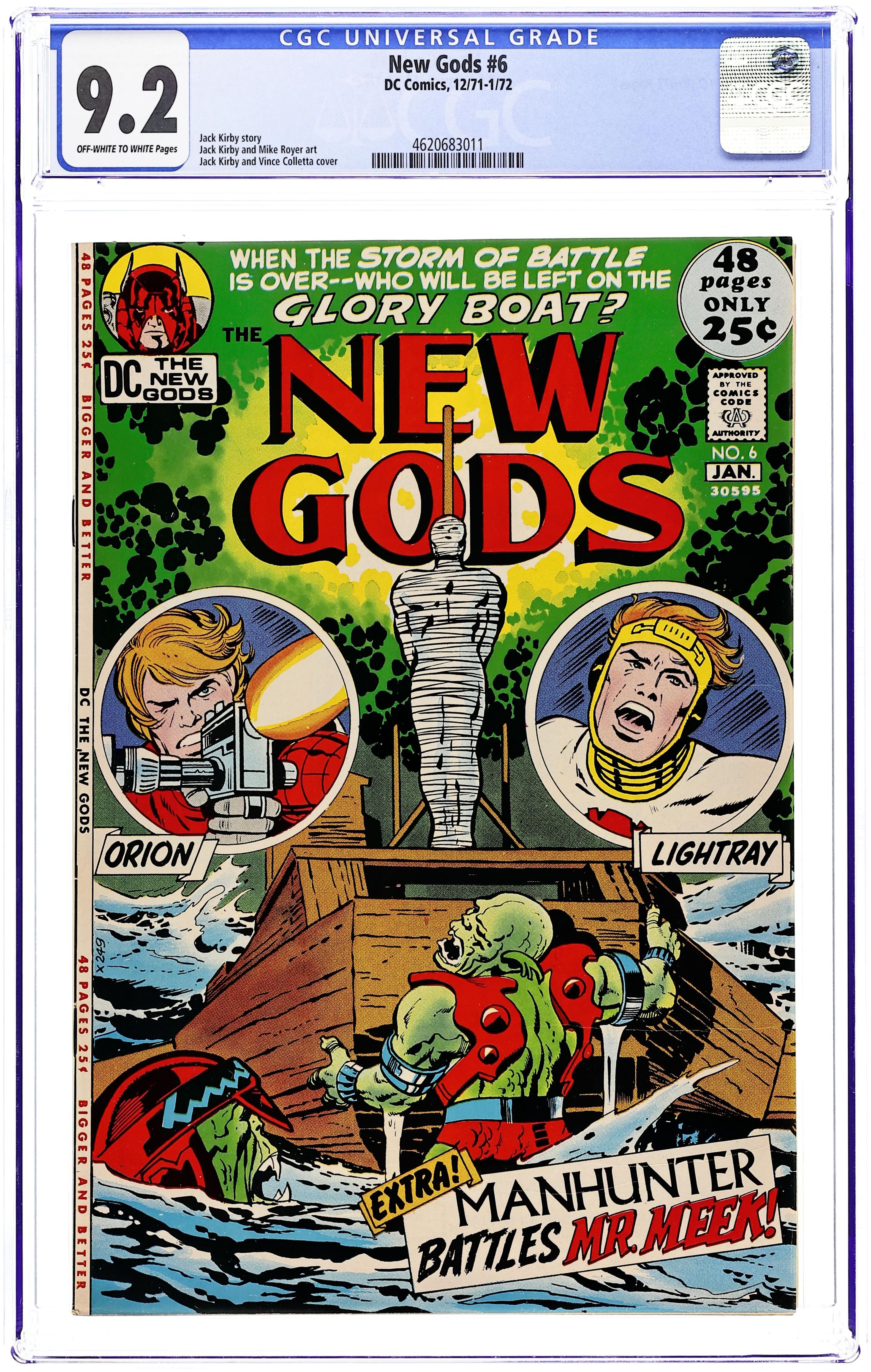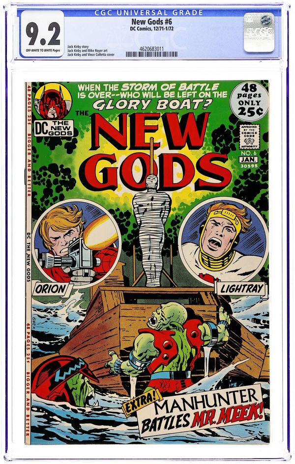Originally presented in New Gods (1971 1st Series) #1-2 - Featuring "Orion of the New Gods!" and "O' Deadly Darkseid!" Written by Jack Kirby. Art by Jack Kirby Vince Colletta. Wraparound Cover by Jack Kirby. Includes a one-page text feature, "A Visit With Jack Kirby" by Marv Wolfman. Intrigue! Vengeance! Blazing confrontations that dwarf the Infinite! Revisit Jack Kirby's Third World and marvel at the high adventure of the daring New Gods! 48 pages, FC. Cover price $2.00.