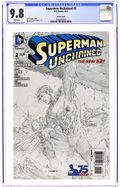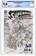 Limited 1 for 300 Variant Cover by Jim Lee, Scott Williams (W) Scott Snyder (A) Jim Lee & Various Superman's found out the secret the U.S. Army tried desperately to keep from him-or more specifically, that secret's found him! But with hijacked drone aircraft tearing Tokyo apart, there's not much time for mystery...and with Lois Lane on the case as well, what's in the darkness will come to the light!" Cover price $3.99.