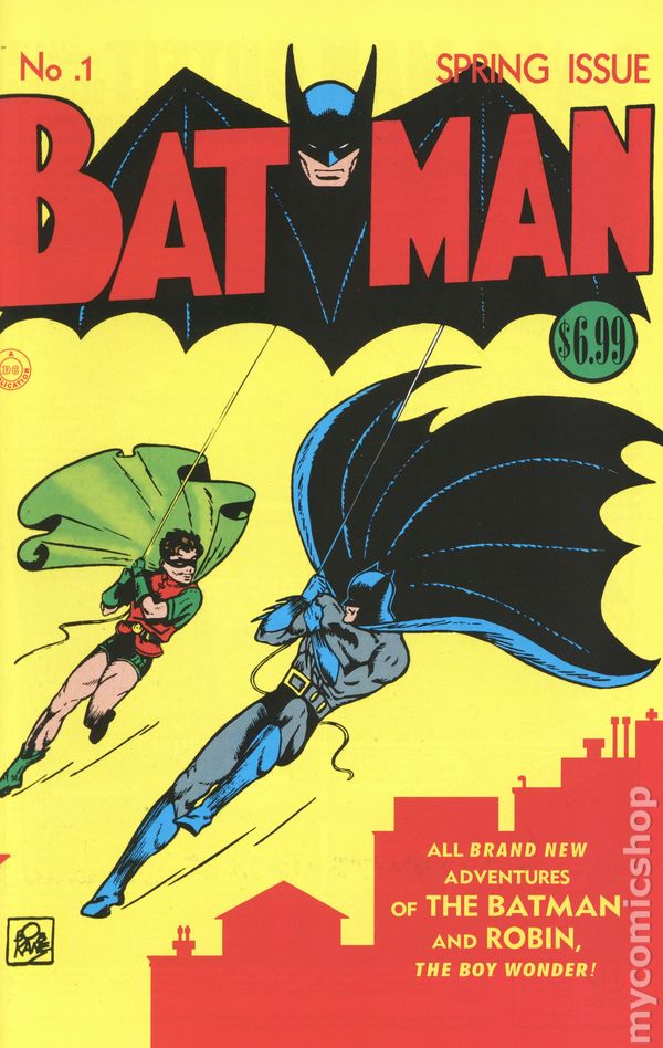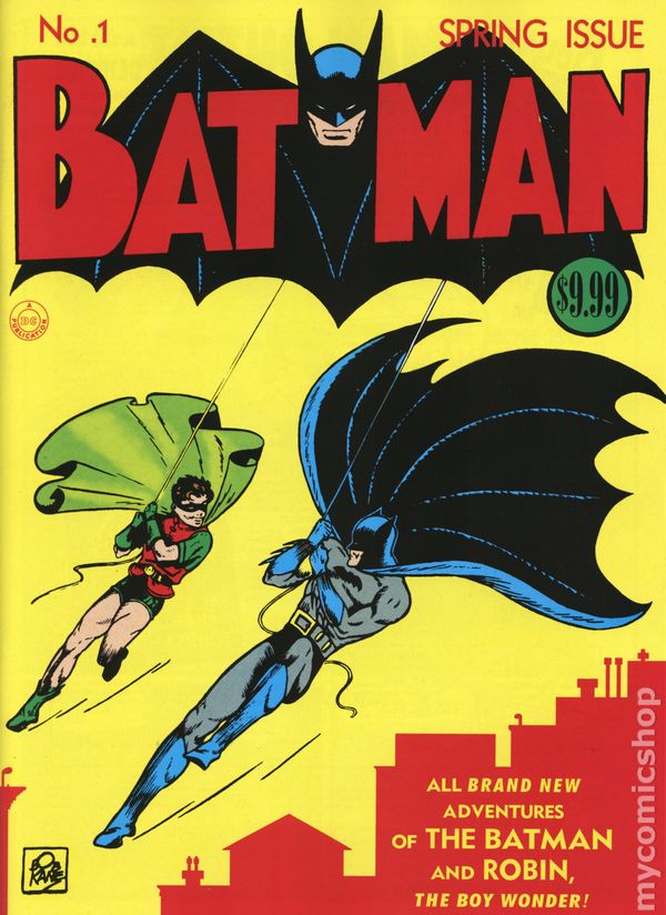 Written by Bill Finger. Art by Bob Kane, Jerry Robinson. Cover by Bob Kane. THE ISSUE THAT CHANGED THE WORLD! From the pages of Detective Comics--the Dark Knight in his own book at last! Learn who he is and how he came to be! See the first appearances of the villainous Joker--and the thrilling thief who will come to be known as Catwoman! All this and the preternatural perils of Professor Hugo Strange! 64 pages, full color. Cover price $9.99.