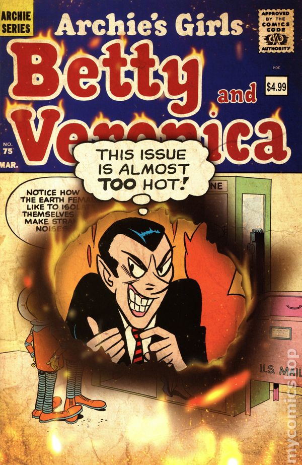 Written by Frank Doyle. Art by Dan DeCarlo, Joe Edwards. Cover by Bob White, Dan DeCarlo. BETTY and VERONICA make a deal with the DEVIL?! What wouldn't you do to get the attention of the one you love? What kind of deal would you make? Enter Mr. Inferno. Dealing in wishes is his job, and he's very good at it. However, love in Riverdale is rarely simple, and he may have just met him match... er... matches. All this and two more timeless tales from the world of Archie in BETTY & VERONICA #75 from 1962, faithfully reprinted in a full-facsimile edition! 32 pages, full color, not rated. Cover price $4.99.