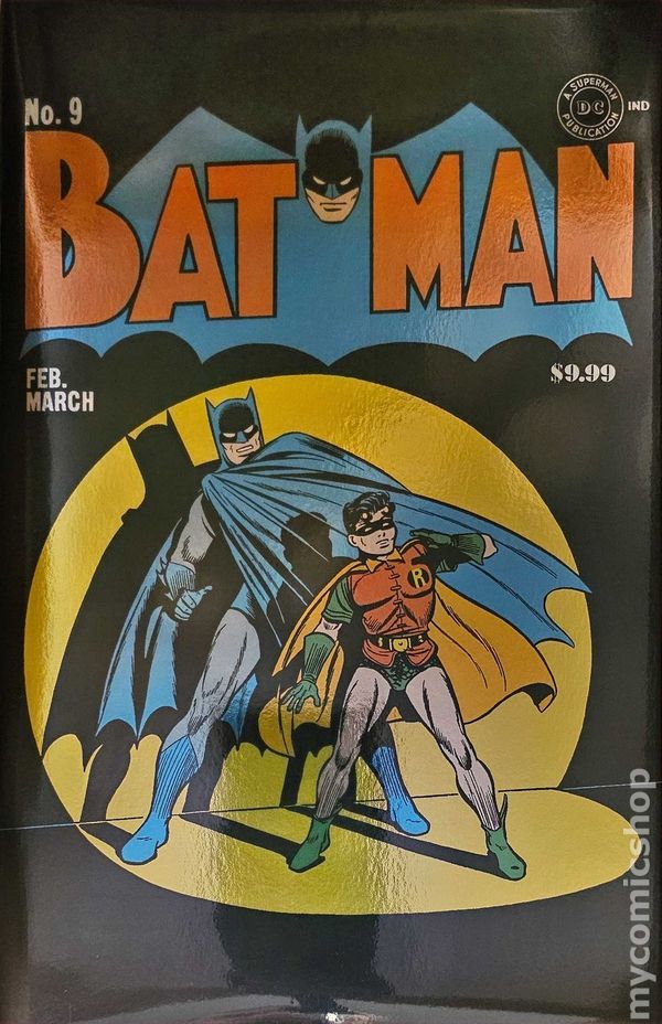 Written by Bill Finger. Art by Bob Kane, Jerry Robinson, George Roussos. Blank Cover. Batman and Robin take on The Joker in another one of his crafty capers in The Riddle of the Missing Card, featuring the first appearance of the remodeled Golden Age Batmobile! Packed with thrills, chills, and double crosses galore, this issue also contains two more adventures starring the Dynamic Duo: The Book of Enchantment and The Case of the Honest Crook. 68 pages, full color. Rated T+ Cover price $7.99.