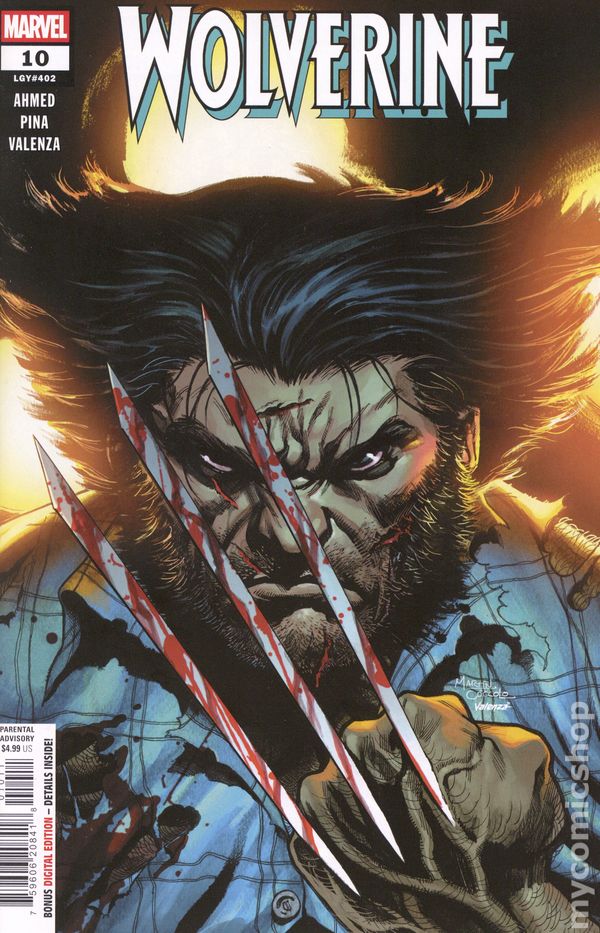 Written by Saladin Ahmed, Various. Art by Martin Coccolo, VARIOUS. Cover by Martin Coccolo. CELEBRATING 400 ISSUES OF WOLVERINE WITH THE FIGHT OF HIS LIFE! A massive issue you cannot afford to miss! WOLVERINE faces off with the ADAMANTINE! The WENDIGO is pulled into a deadly trap as a specter from Wolverine's past emerges - and the Wolverine story you never thought you'd see begins here! PLUS: A special celebratory bonus story by DANIEL WARREN JOHNSON! Note: Several key appearances are contained in this issue. 64 pages, full color. Rated Parental Advisory Cover price $7.99.
