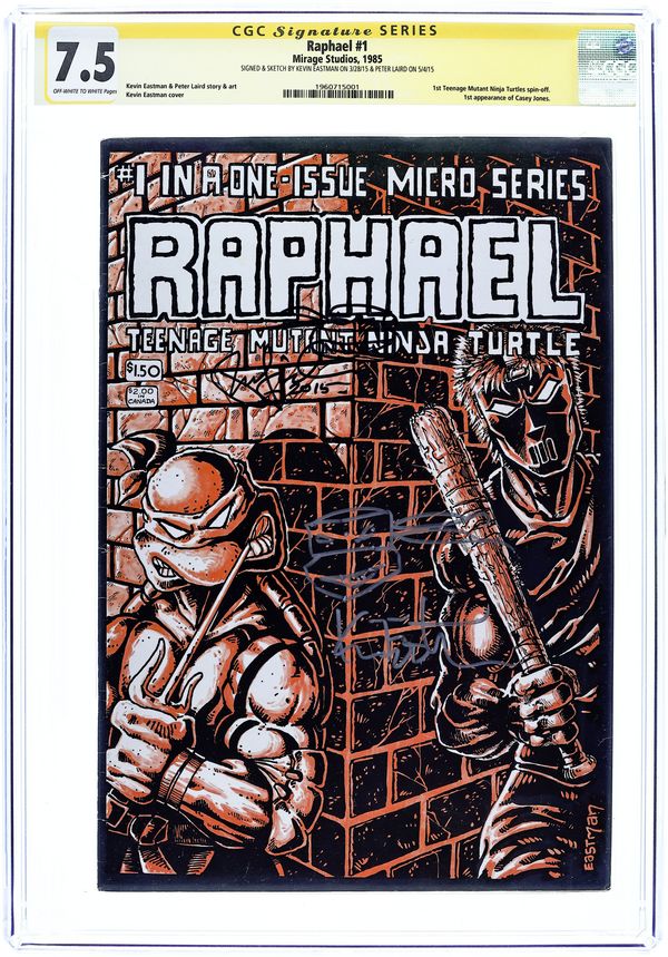 Published 1985 by Mirage Studios.Raphael (1985 Mirage Studio) Teenage Mutant Ninja Turtles 1 CGC 7.5 SS Eastman/Laird Eastman Variant 1st Printing
