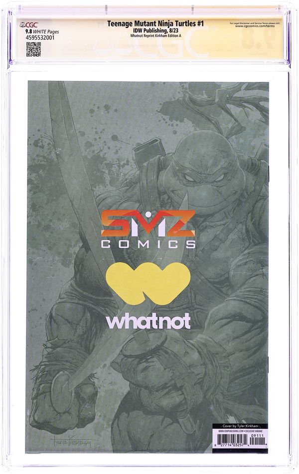 Published Aug 2023 by IDW Publishing.Teenage Mutant Ninja Turtles (2011 IDW) Later Reprints 1KIRKHAM.A CGC 9.8 SS Eastman