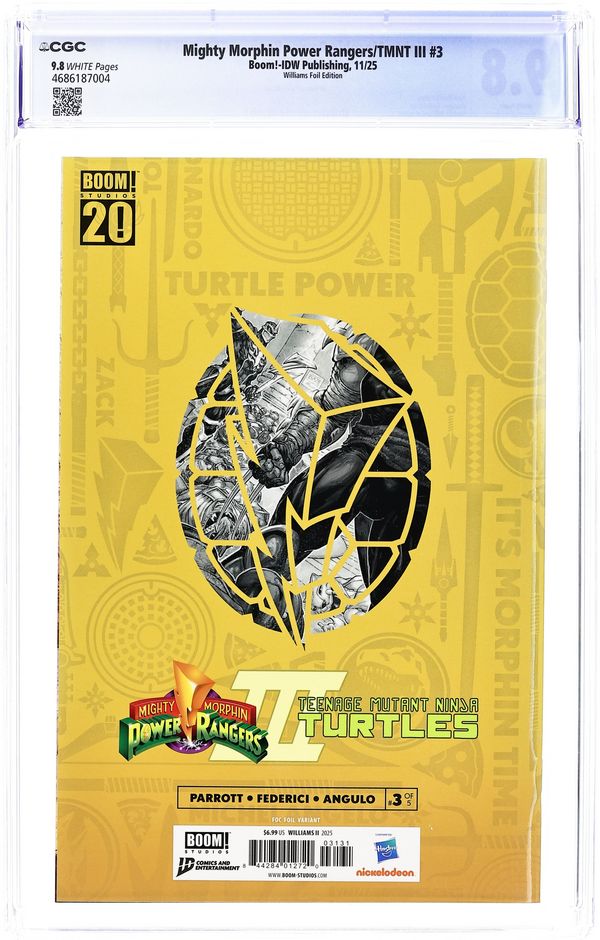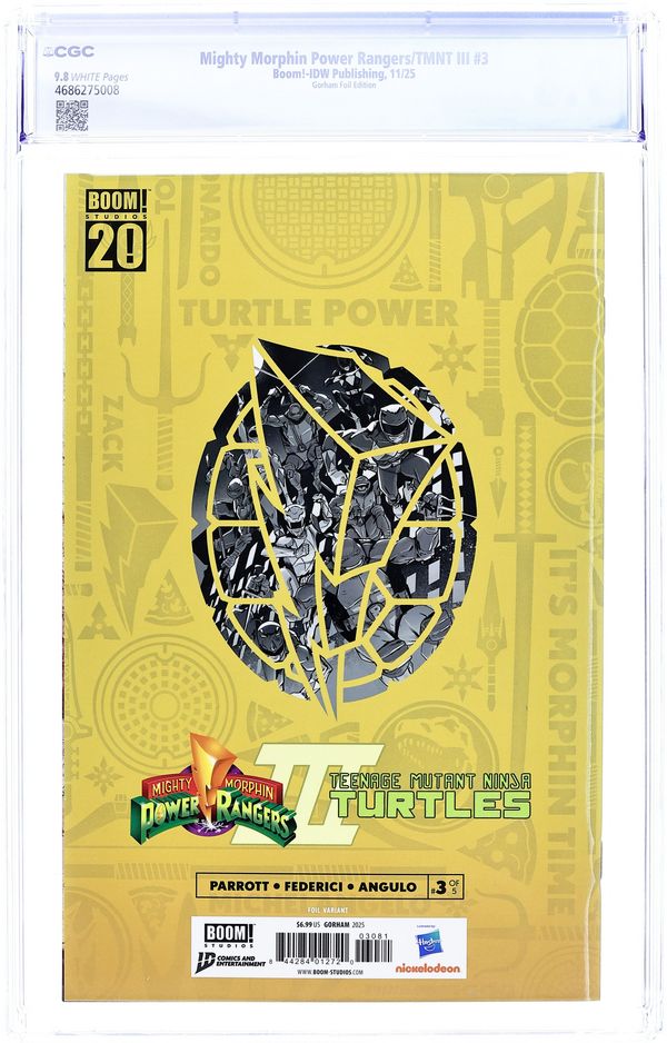 Published Nov 2025 by Boom Studios.Mighty Morphin Power Rangers Teenage Mutant Ninja Turtles III (2025 Boom) 3L CGC 9.8