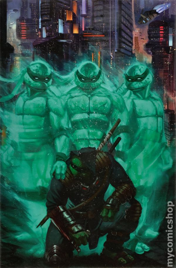 Shattered Comics exclusive sixth printing variant by Matt Dimasi. Wish for Death - Written by Kevin Eastman, Peter Laird and Tom Waltz. Art by Kevin Eastman (layouts), Esau Escorza, Isaac Escorza and Ben Bishop. It's the TMNT event of 2020! Springing from the minds of TMNT co-creators Kevin Eastman and Peter Laird comes an epic like you've never seen before! In a future NYC far different than the one we know today, a lone surviving Turtle goes on a seemingly hopeless mission to obtain justice for his fallen family and friends. Kinetic layouts from Eastman, and a thrilling script full of surprises from Eastman and longtime TMNT scribe Tom Waltz all combine to make this one of the most memorable TMNT stories you will ever read! Oversized in both format and page count, this is a perennial TMNT tale that can't be missed! 48 pages, full color. Mature Readers Cover price $8.99.