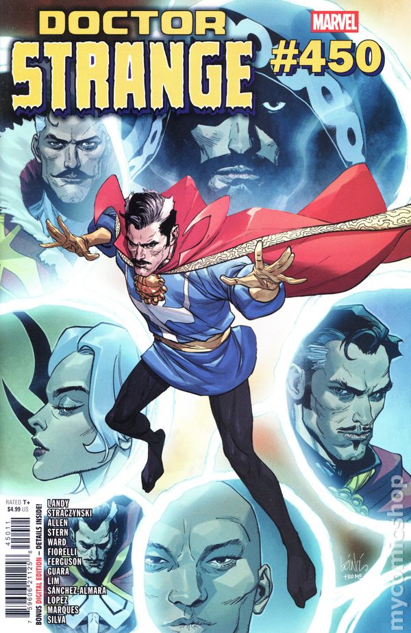 Written by Derek Landy; Christian Ward, Various. Art by Christian Ward; Ivan Fiorelli, VARIOUS. Cover by Kevin Nowlan. As turmoil seizes Asgard, Doctor Strange's life is about to change forever. But as he stands on the threshold of a true journey into mystery, it turns out the past isn't quite done with him yet… Fan-favorite creators including Derek Landy, Christian Ward, Ashley Allen, and Ivan Fiorelli reveal untold tales of Stephen Strange's past while current scribe Derek Landy reveals a glimpse of the future to come - as Marvel celebrates 450 issues of DOCTOR STRANGE! 32 pages, full color. Rated T+ Cover price $4.99.