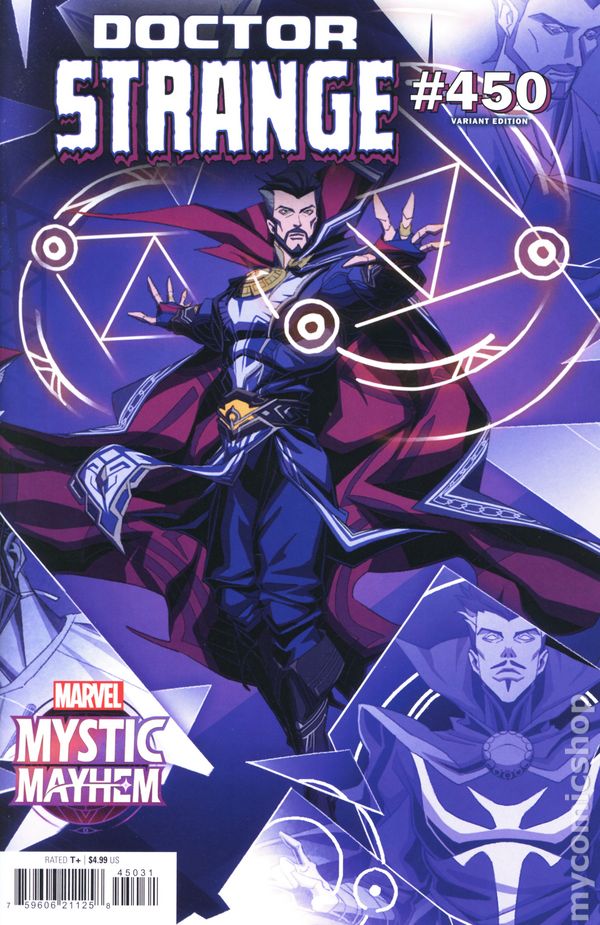 Limited 1 for 25 Retailer Incentive Variant Cover. Written by Derek Landy; Christian Ward, Various. Art by Christian Ward; Ivan Fiorelli, VARIOUS. Cover by Mark Buckingham. As turmoil seizes Asgard, Doctor Strange's life is about to change forever. But as he stands on the threshold of a true journey into mystery, it turns out the past isn't quite done with him yet… Fan-favorite creators including Derek Landy, Christian Ward, Ashley Allen, and Ivan Fiorelli reveal untold tales of Stephen Strange's past while current scribe Derek Landy reveals a glimpse of the future to come - as Marvel celebrates 450 issues of DOCTOR STRANGE! 32 pages, full color. Rated T+ Cover price $4.99.