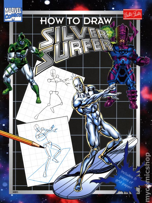 1st printing. Includes 8 pages of grid paper. This Marvel "How to Draw" series shows aspiring artist step-by-step how to draw their favorite heroes and villains fromt he Marvel Universe. In this volume, learn how to draw the Silver Surfer, Galactus, Thanos, and all the rest of the supporting cast from the Sentinel of the Spaceway's corner of the Marvel U. Softcover, 10 1/2-in. x 13 1/2-in., 40 pages, full color. NOTE: Marvel 3-month free subscibtion featured on the inside of back cover is expired.