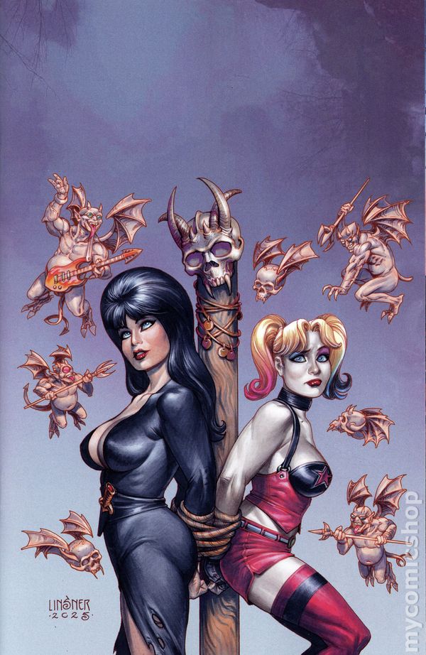 Limited 1 for 20 Retailer Incentive Variant Cover.(W) Amanda Conner, Jimmy Palmiotti (A) Amanda Conner, Juan Samu (CA) Joseph Michael Linsner When Elvira first met Harley Quinn, the Mistress of the Dark was desperate for any plan that could help her save her beloved TV show after it was threatened with cancellation by heartless corporate raiders. Well, the Clown Princess of Crime came up with a plan, all right, and now Elvira is along for the ride no matter how crazy Harley's scheme turns out to be! Putting together the biggest Halloween block party ever staged is a great idea in theory, but pulling it off means raising a massive amount of money and a pile of cash that big is sure to draw the attention of every thug and delinquent in the Tri-State area. If Harley and Elvira want to keep their party funds secure, they're going to have to become too big to fail and that means going international! Famed Harley Quinn Whisperers AMANDA CONNER and JIMMY PALMIOTTI double down on the year's most hotly anticipated crossover in Harley Quinn X Elvira #2, with Conner providing two captivating covers as well as several story pages to accompany artist JUAN SAMU's interiors-all capped off by indecently alluring covers from JOSEPH MICHAEL LINSNER, CHAD HARDIN, and BEN CALDWELL! 32 pages, full color, rated teen+. Cover price $4.99.