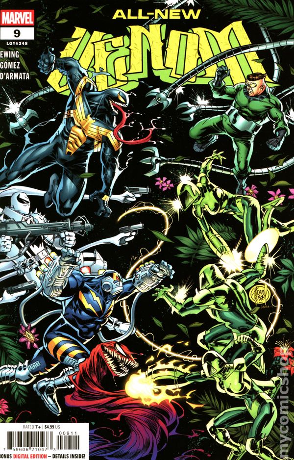 Written by Al Ewing. Art by Carlos Gomez. Cover by Fanyang. EIGHT-ISSUE TENTACULAR SPECTACULAR! As Venom battles the Symbiote Squad at the Daily Bugle, the Sleeper Agent attempts a daring jailbreak on North Brother Island...neither of them knowing that S.C.A.R. has a superior new ally in the war on symbiotes! Doctor Octopus is back - and he's more armed and dangerous than ever! 32 pages, full color. Rated T+ Cover price $4.99.