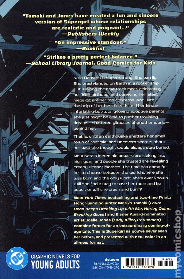 3rd Edition - 1st printing. Collects Supergirl: Being Super (2016) #1-4. Written by Mariko Tamaki. Art and cover by Joëlle Jone and Sandu Florea. SUPERGIRL AS YOU'VE NEVER SEEN HER BEFORE! New York Times bestselling and Caldecott Honor-winning writer Mariko Tamaki (This One Summer, Roaming) and Eisner Award-nominated artist Joelle Jones (Lady Killer, Catwoman) combine forces for an extraordinary coming-of-age tale. Kara Danvers is super-strong. She can fly. She crash-landed on Earth in a rocket ship. But winning the next track meet, celebrating her 16th birthday, and surviving her latest mega-zit are her top concerns. And with the help of her best friends and her kinda-infuriating-but-totally-loving adoptive parents, she just might be able to put her troubling dreams--shattered glimpses of another world--behind her. That is, until an earthquake shatters her small town of Midvale...and uncovers secrets about her past she thought would always stay buried. The time has come for her to choose: Will she find a way to save her town and be super, or will she crash and burn? Softcover, 208 pages, full color. Teen+ Cover price $16.99.