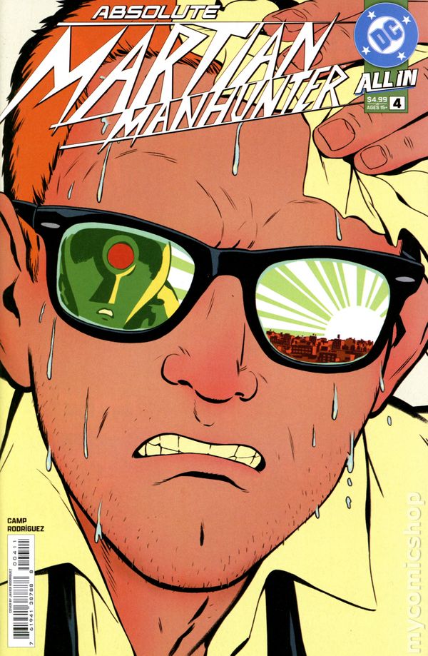 Limited 1 for 100 Retailer Incentive Variant Cover. Written by Deniz Camp. Art by Javier Rodriguez. Cover by Javier Rodriguez. DENIZ CAMP AND JAVIER RODRIGUEZ TRANSFORM THE ABSOLUTE UNIVERSE! Beyond Mars...beyond physical form...beyond Human Understanding...all that's left is the ultimate alien: the Absolute Martian Manhunter! 40 pages, full color. Rated T+ Cover price $5.99.