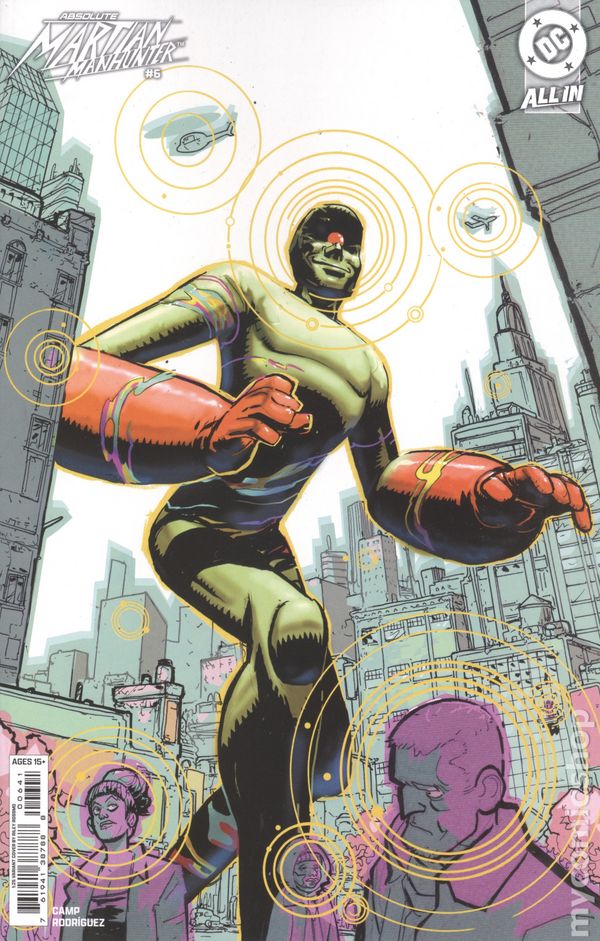 Written by Deniz Camp. Art by Javier Rodriguez. Cover by Marcos Martin. DENIZ CAMP AND JAVIER RODRIGUEZ TRANSFORM THE ABSOLUTE UNIVERSE! Beyond Mars...beyond physical form...beyond Human Understanding...all that's left is the ultimate alien: the Absolute Martian Manhunter! 40 pages, full color. Rated T+ Cover price $5.99.