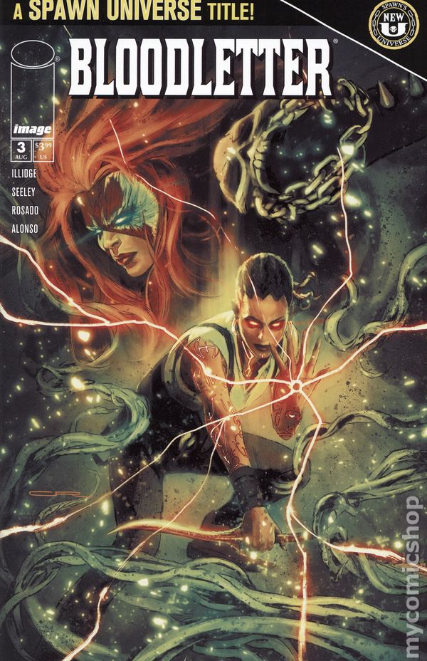 Written by Joseph P. Illidge, Tim Seeley. Art by Christian Rosado. Cover by Christian Rosado. MINISERIES PREMIERE Tasha Thornwall is THE BLOODLETTER, mystical mercenary of the world's secret underground. A former CIA operative forced to live in the shadows after being outed by Al Simmons 10 years ago, Tasha is now out for revenge when she learns Al Simmons is alive as Spawn. The mission to hunt down and kill Spawn begins in this debut miniseries by JOSEPH P. ILLIDGE (DC Comics' The Shadow Cabinet) and TIM SEELEY (HACK/SLASH, LOCAL MAN, Nightwing), along with the incredible art talents of CHRISTIAN ROSADO. 24 pages, full color. Cover price $3.99.