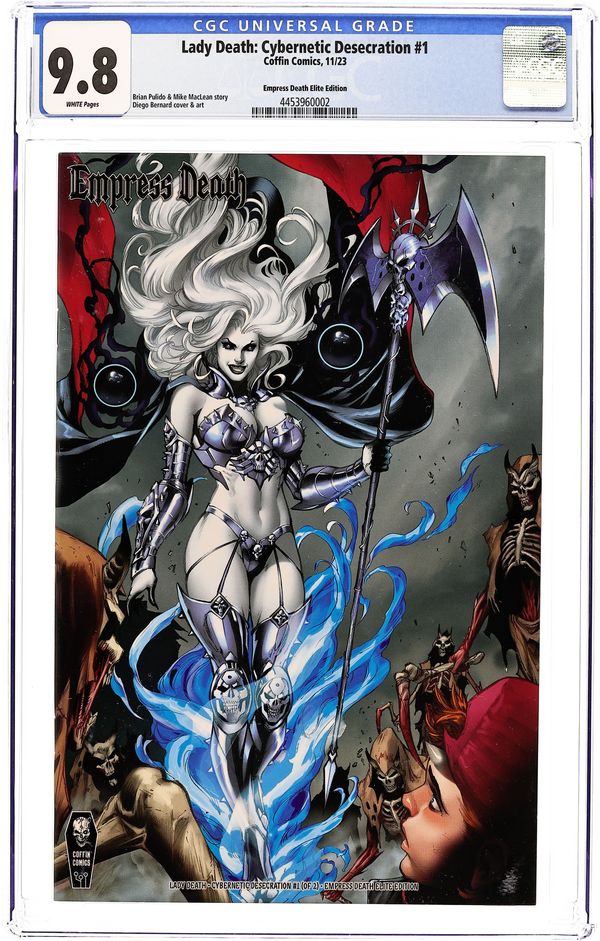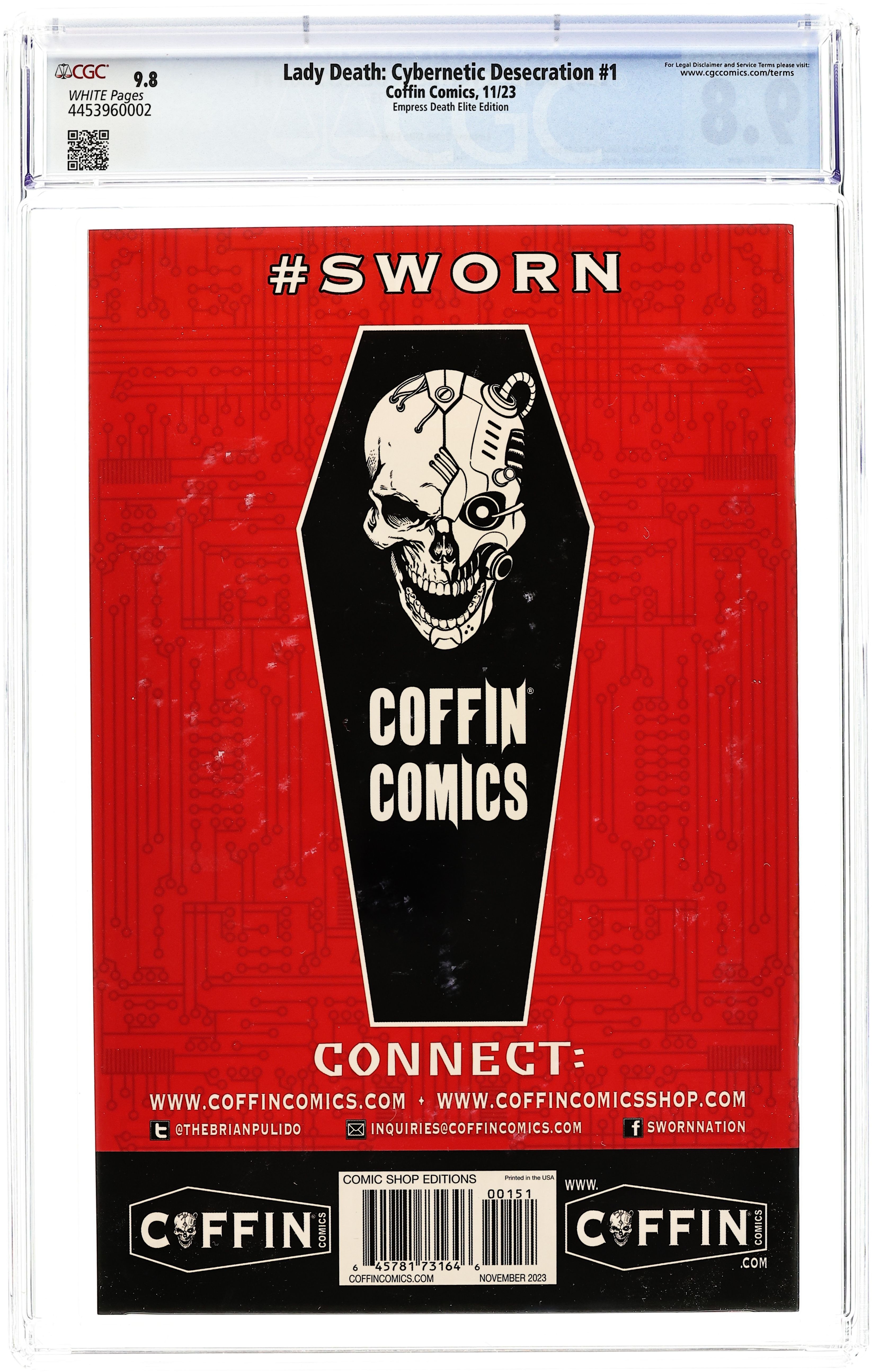 Tags: Lady DeathPublished Nov 2023 by Coffin Comics.Lady Death Cybernetic Desecration (2023 Coffin) 1E CGC 9.8