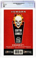 Written by Brian Pulido, Mike MacLean. Art by Diego Bernard. Cover by Richard Ortiz. Chapter 19 (Part 1) in the Coffin Comics Lady Death Universe. Hellageddon has arrived! After the tragic conclusion of Imperial Requiem, Lady Death returns to 'our' Earth, only to discover two years have passed and unprecedented prosperity has spread across the globe. But soon this peace is slashed to bloody pieces. A savage demonic cult emerges, bent on chaos and destruction. Now, Lady Death must race against time and battle demonic forces to save a trusted friend from an unspeakable fate. Watching from the shadows, Satanus devises a nefarious plan to dominate the world and bring Lady Death to her knees. Has Lady Death met her match? 32 pages, full color. Cover price $5.99.