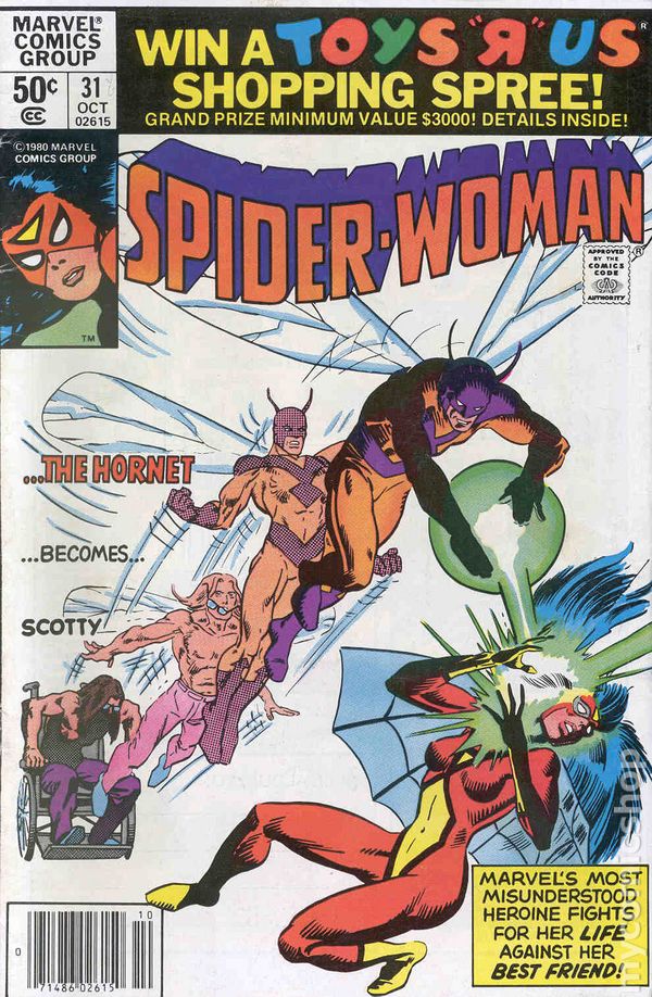 Newsstand Edition. Cover pencils by Frank Miller, inks by Al Milgrom. The Sting of the Hornet!, script by Michael Fleisher, pencils by Steve Leialoha (breakdowns) and Jim Mooney (finished art), inks by Jim Mooney; Spider-Woman battles her best friend, Scotty as the Hornet. The Human Torch Saves the Valley! Hostess Fruit Pies ad with Human Torch, inks by Joe Rubinstein. 36 pgs. $0.50. Cover price $0.50.