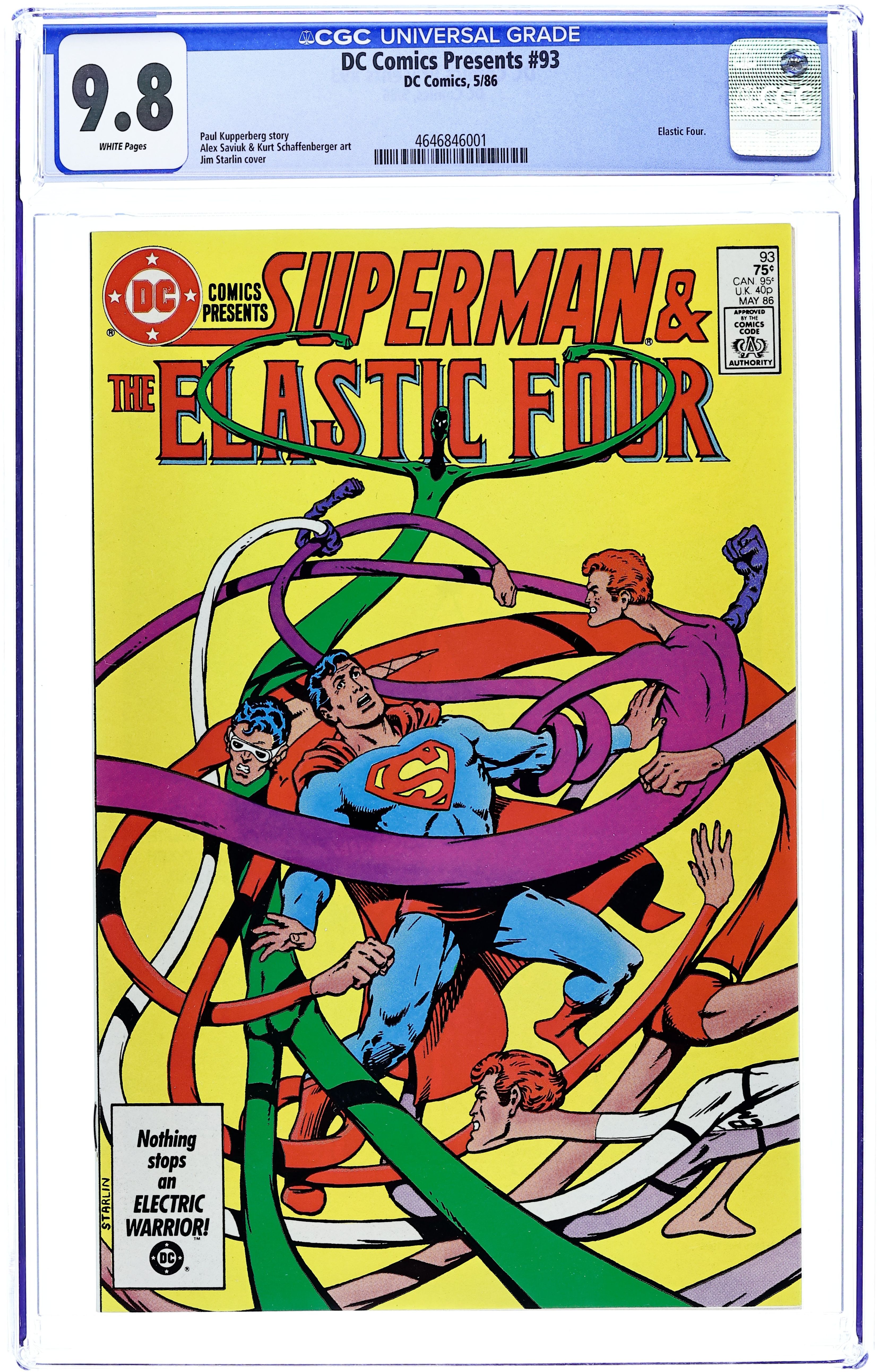 Superman, Elastic Lad, Elongated Man and Plastic Man are on one side. The villainous Malleable Man is on the other. O.K., maybe the scales are tipped...but in whose favor? Written by Paul Kupperberg, penciled by Alex Saviuk, inked by Kurt Schaffenberger. Cover by Jim Starlin. Cover price $0.75.