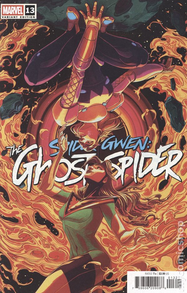 Written by Stephanie Phillips. Art by Paolo Villanelli. Cover by Nimit Malavia. RISING FROM THE ASHES! Ghost-Spider's adventures in space continue as she tries to bring the power of the Cosmic Cube to heel and prevent King Loki from using it to remake the universe in his image. But with its immense psychic power seemingly too much for her mind to handle alone, she'll need the help of the most powerful telepath in the cosmos…PHOENIX! 28 pages, full color. Rated T+. Cover price $3.99.