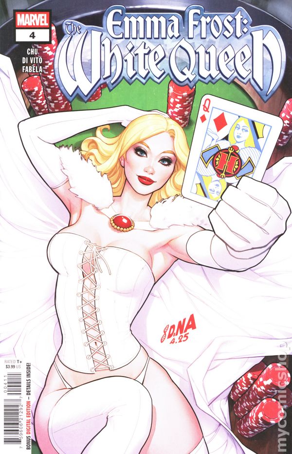 Written by Amy Chu. Art by Andrea Di Vito. Cover by David Nakayama. The White Queen conquers the City of Sin! In Las Vegas, a disgraced former member of the Inner Circle may hold the key to uncovering the plot against Emma Frost. But with the Hellfire Club about to crown a new queen, has time run out? Plus: A new player that you - or Emma! - never saw coming makes their presence known! 28 pgs, FC, T+. Cover price $3.99.
