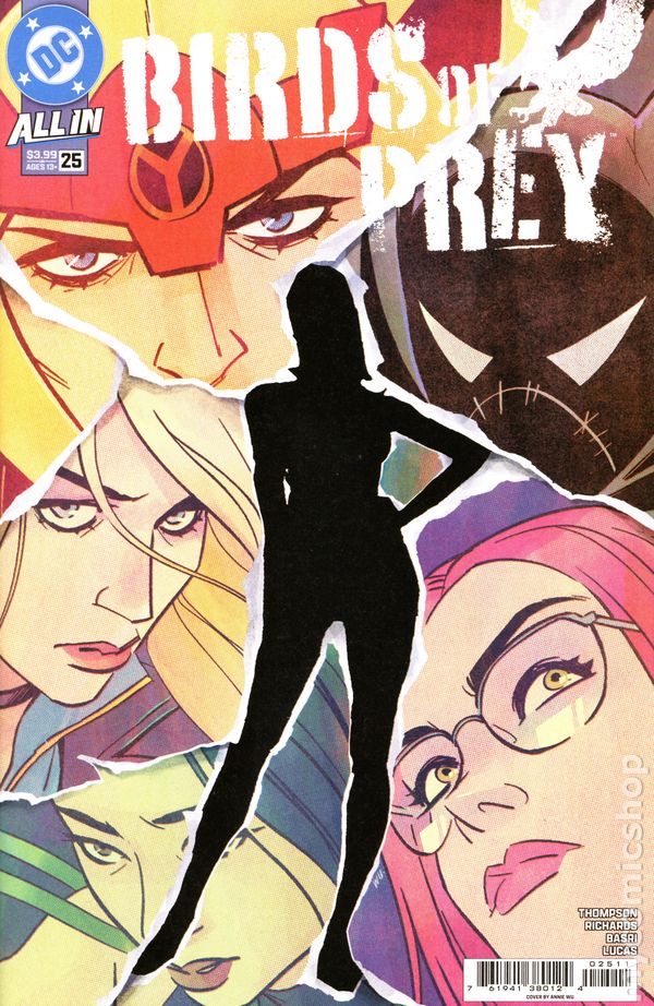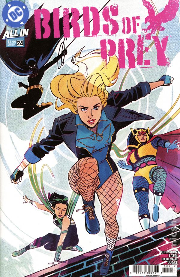 Written by Kelly Thompson. Art by Sami Basri. Cover by Annie Wu. A NEW VILLAINOUS TEAM-UP TAKES THE SPOTLIGHT! A new villain team, fashioned specifically to take out the Birds of Prey, has emerged in dramatic fashion. And with the Birds deliberately scattered across the globe investigating both real and false leads, they're more vulnerable than ever. With the strongest of them already fallen, how can any of them survive what's coming? 28 pages, full color. Rated T+ Cover price $3.99.