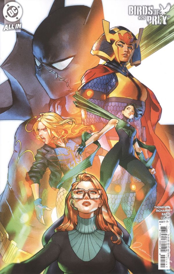 Limited 1 for 25 Retailer Incentive Variant Cover. Written by Kelly Thompson. Art by Cliff Richards, Sami Basri. Cover by Gerald Parel. CELEBRATE THE 25TH ISSUE OF BIRDS OF PREY! The Birds of Prey took the fight to The Shadow Army and won--but that was merely the Shadow Army's first move and their endgame is only just beginning. After an unexpected ally emerges, the Birds find themselves racing against the clock to stop a game called The Unreality that is primed to become a mass casualty event in Gotham. To stop it, the Birds will need to go undercover, enter the game, dismantle it at its source...and somehow make it out alive. 32 pages, full color. Rated T+ Cover price $4.99.