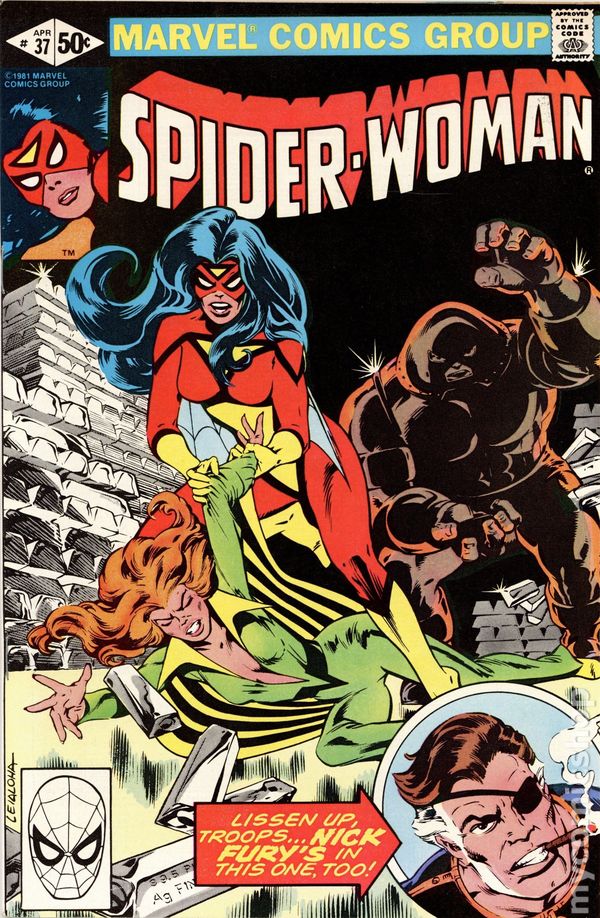 Direct Edition. Cover art by Steve Leialoha. Who Am I?, script by Chris Claremont, pencils by Steve Leialoha (layouts) and Terry Austin (finished art), inks by Terry Austin (pages 1-6), Bob Wiacek (pages 7-11, 28-30), Alan Weiss (page 12), Al Milgrom (page 14), and Frank Springer (pages 15-19); Spider-Woman finds herself up against Juggernaut, Black Tom and Tom's niece, Siryn, as they try to steal a government cache of vibranium. 36 pgs. $0.50. Cover price $0.50.
