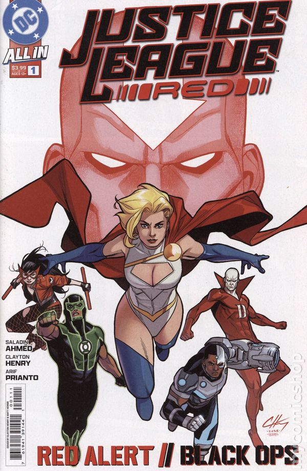 Written by Saladin Ahmed. Art by Clayton Henry. Cover by Clayton Henry. ALL-STARS SALADIN AHMED AND CLAYTON HENRY SOUND THE ALARM! The Justice League has a new spec-ops team so covert, the founders can't know it exists. And its leader is the only hero who could keep JLR off its radar...because he is the radar. Red Tornado is the heart and mind of the Watchtower--watching, projecting into the future, and his projections point to apocalypse as a direct result of the concentrated power of the JLU. When your Justice League ID card lights up red, Reddy needs you. For the fate of humanity, and for yourself, because you don't want to find out what Red can do with what he knows about you. Join a best-in-the-biz creative team--Saladin Ahmed (Wolverine, Daredevil) and Clayton Henry (Action Comics, We Are Yesterday)--and an all-star team of heroes, and find out how far they'll go to keep the peace and keep Red Tornado's secrets. 28 pages, full color. Rated T+ Cover price $3.99.