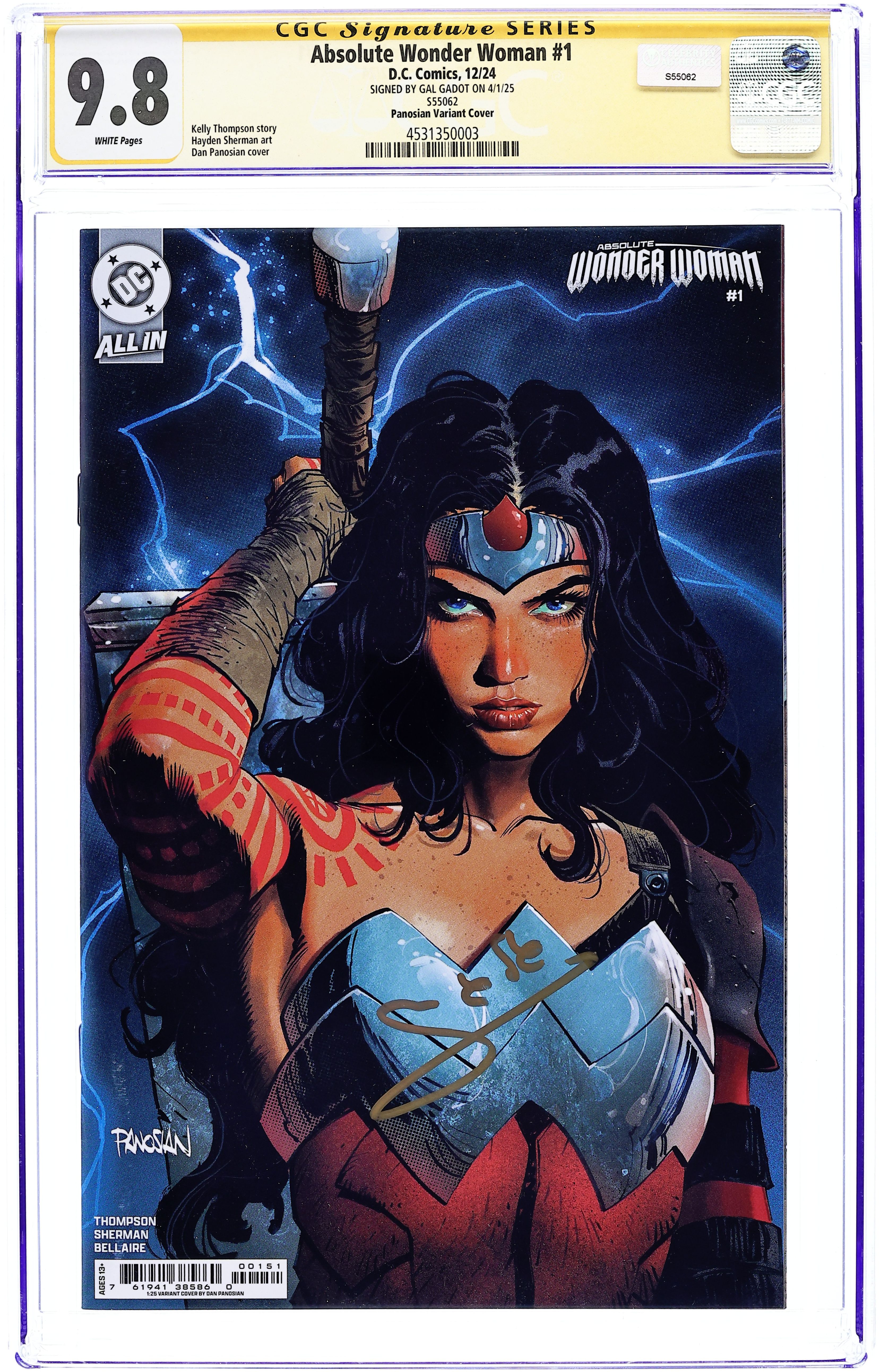 - Signed by Gal Godot on 4/1/25. S55062. Panosian Variant Cover.