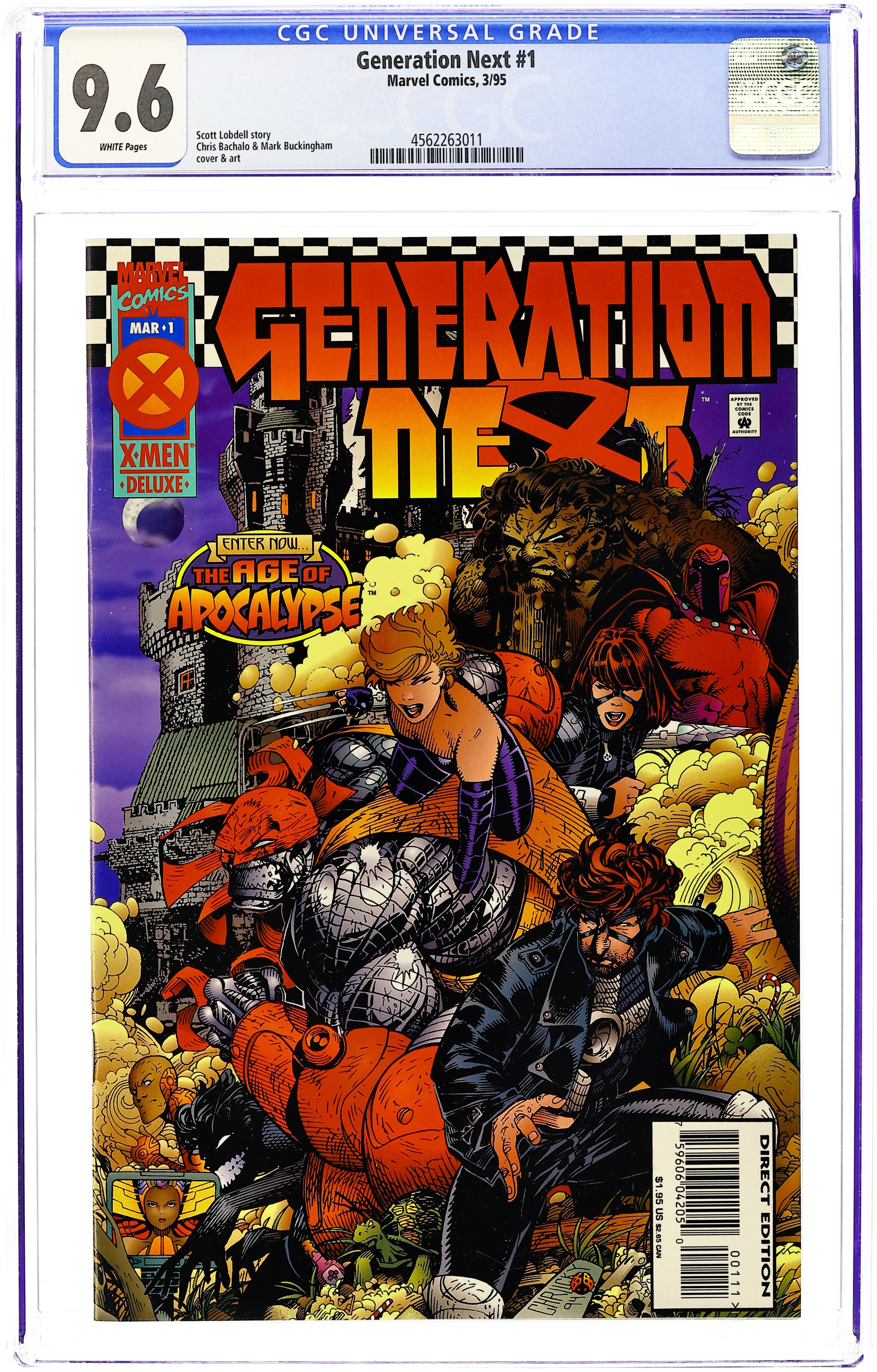 Written by Scott Lobdell. Art and cover by Chris Bachalo and Mark Buckingham. Bye; Colossus and Kitty succeed in rescuing Illyana from the Portland Core mine but lose the entire team of Generation Next kids to do so. Text piece about the Age of Apocalypse. 36 pages, full color. $1.95. Cover price $1.95.