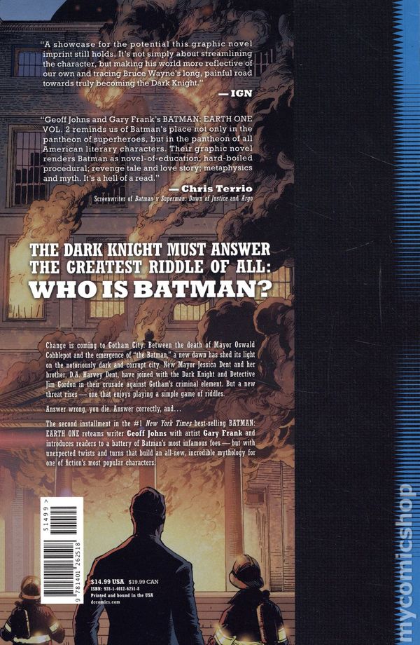 It's here - the sequel to the #1 New York Times bestseller and critically acclaimed BATMAN: EARTH ONE by the superstar creative team of writer Geoff Johns and artist Gary Frank!