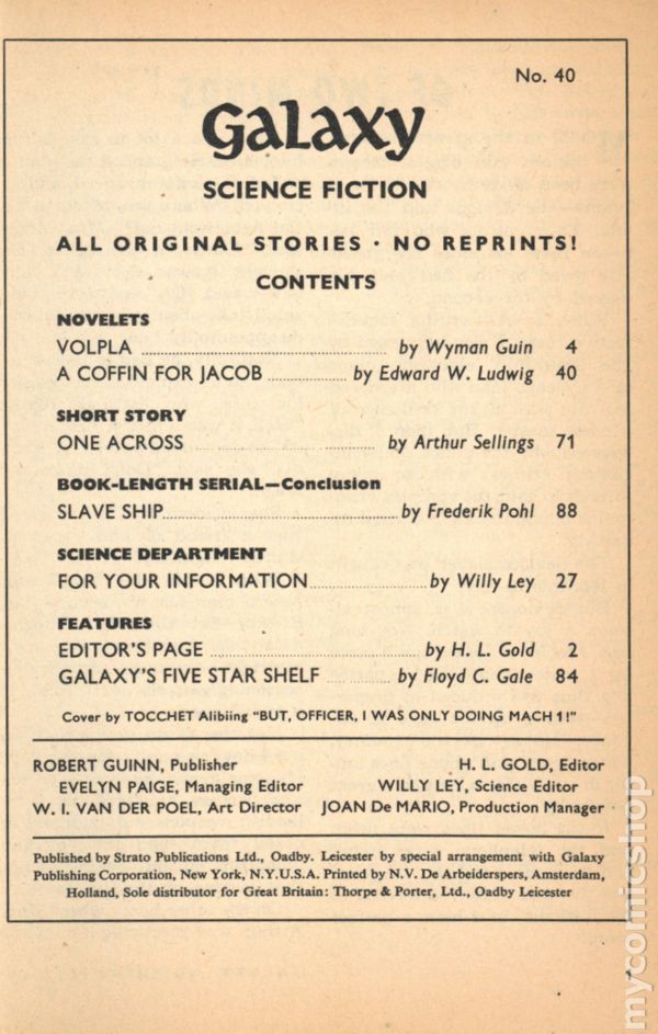Published Jul 1956 by Galaxy Publishing.$32.00
