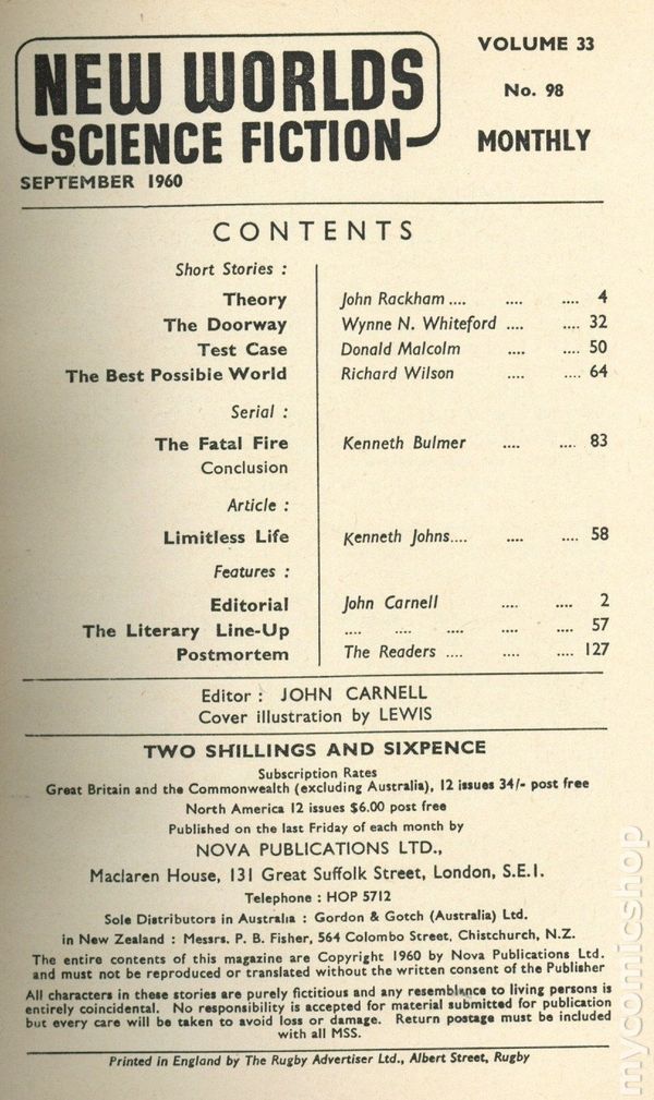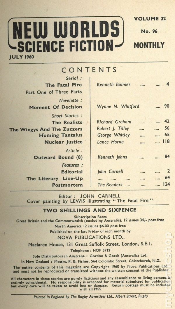 Tags: UK EditionsPublished Aug 1960 by Nova Publications.