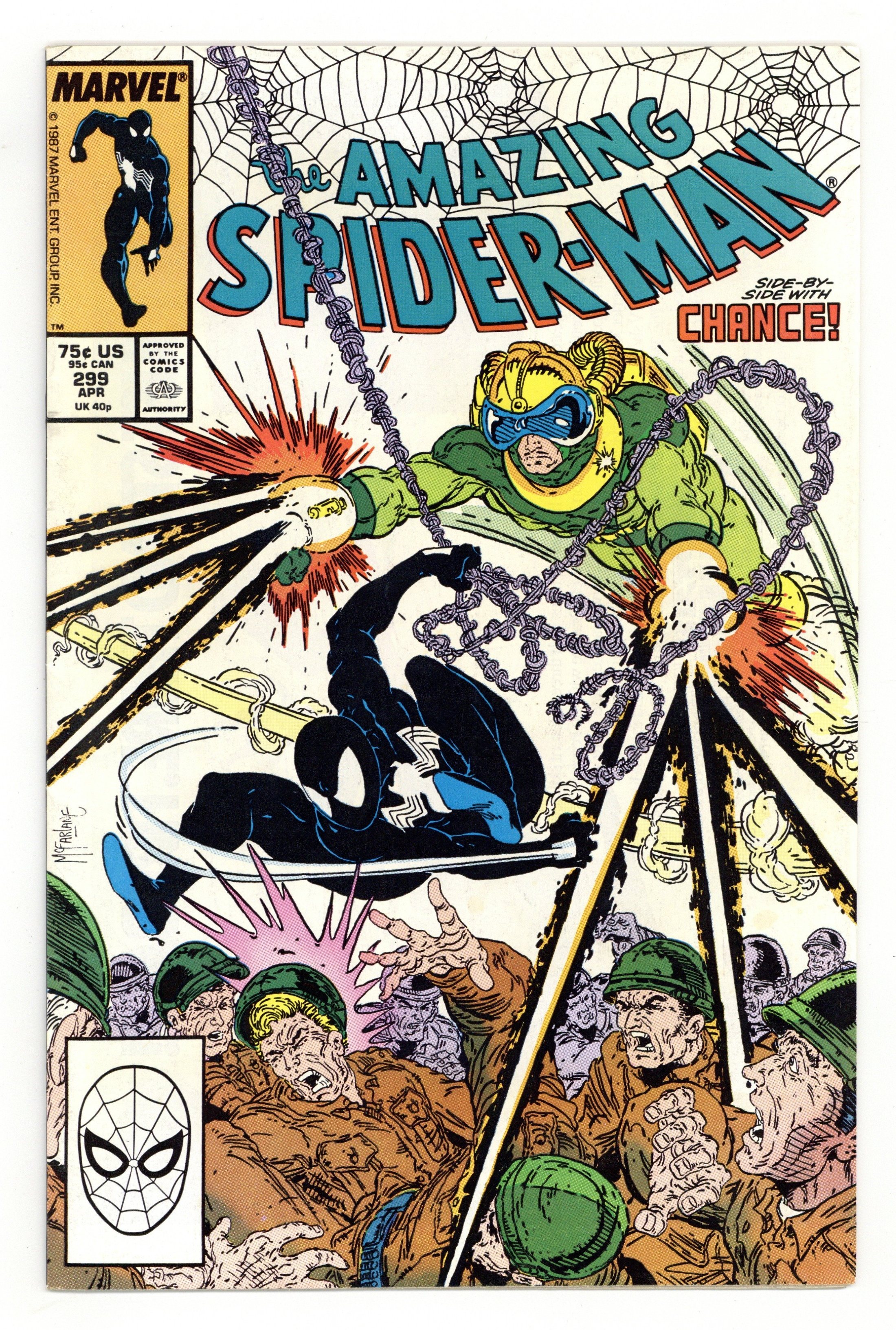 Ends Dec 8 7:21 PM CST Bid History 8 bids Current Bid $31 Your Secret Max Bid If you'd like to bid, please log in or register. Direct Edition. "Chance Encounter!" Part 1 of 2. Script by David Michelinie. Pencils by Todd McFarlane. Inks by Bob McLeod. Cover by Todd McFarlane. Chance is back in business and working a new job for the Life Foundation! The clandestine organization wants Chance to steal an arms shipment coming into the west side docks! That should be a piece of cake for the high-flying mercenary! However, the Daily Bugle dispatches an undercover photographer to observe the delivery! And beneath the moonlit sky, fireworks explode when Chance and the Amazing Spider-Man throw down on the docks! First appearance (and cameo on the last page) by Eddie Brock (aka Venom). First appearance of Carlton Drake of the Life Foundation. Cameo appearances by Mary Jane Watson, Joy Mercado, and Joe Robertson. (Notes: Chance previously appeared in Web of Spider-Man 15. This issue begins Todd McFarlane's 2-year run as the penciler of the Amazing Spider-Man series.) 36 pages. Cover price $0.75.