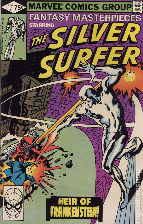 Direct Edition. Reprints Silver Surfer (1969 1st Series) #7. "The Heir of Frankenstein!" Written by Stan Lee. Pencils by John Buscema. Inks by Sal Buscema. When a madman clones the power of the Silver Surfer, the Sentinel of the Spaceways finds himself in mortal combat with a creatures who power rivals his own. Cover price $0.75.
