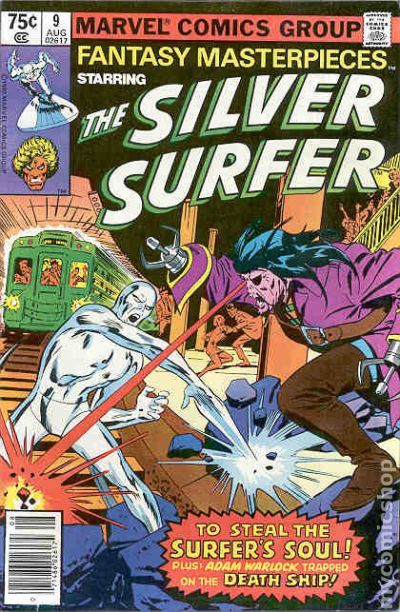 Newsstand Edition. Reprints Silver Surfer (1969 1st Series) #9. "...To Steal the Soul of the Silver Surfer!" Part 2 of 2. Written by Stan Lee. Penciled by John Buscema. Inks by Dan Adkins. The embodiment of evil in the Marvel Universe, Mephisto, has sent a powerful force for evil to bring him the soul of the Silver Surfer. Includes the back-up tale "Death Ship!" Starring Adam Warlock. Originally presented in Strange Tales (1951-1976 1st Series) #179. Story and art by Jim Starlin. Can Warlock overcome an entire ship of space pirates who are out to capture him. Cover price $0.75.
