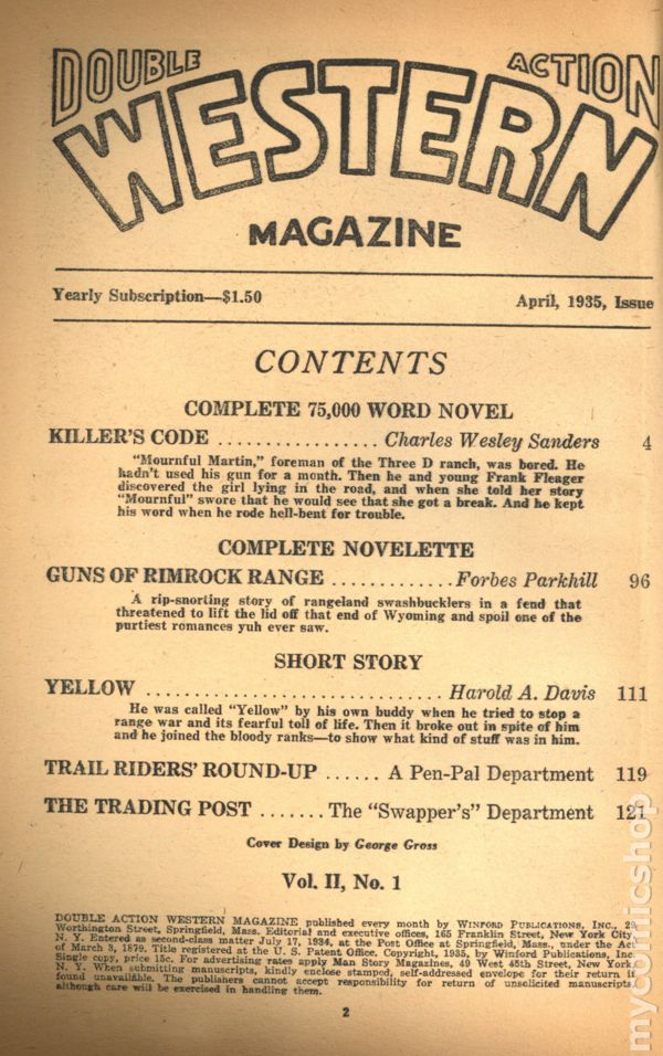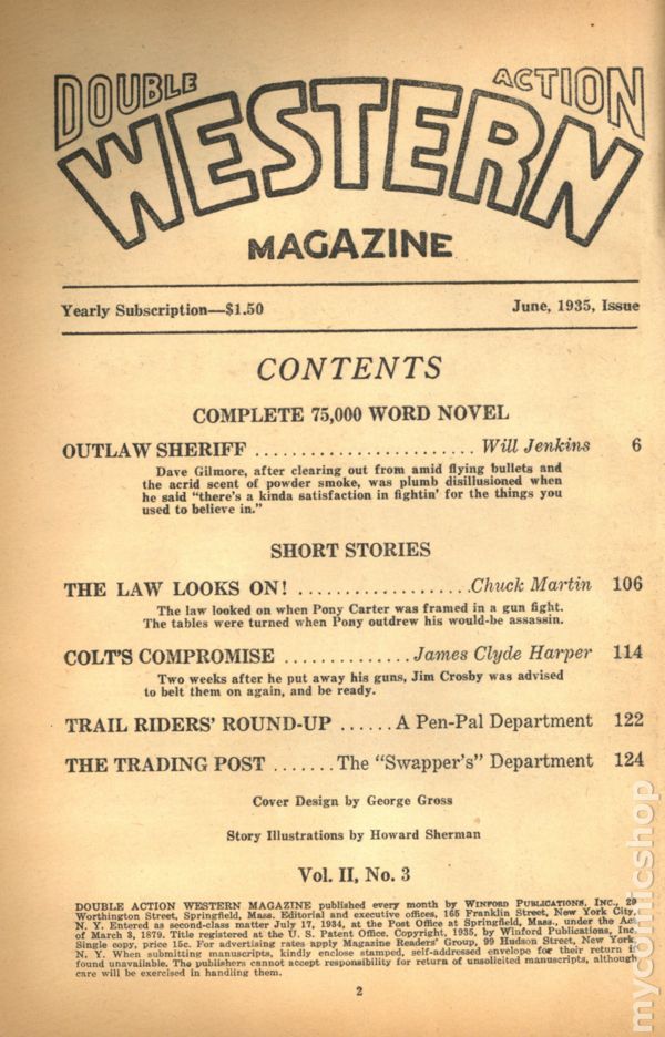 Volume 2, Issue 3 - June, 1935. Cover by George Gross. Western Stories by Will Jenkins, Chuck Martin, and James Clyde Harper. 7-in. x 10-in., 128 pages, Text Only (with B&W Illustrations) Cover price $0.15.