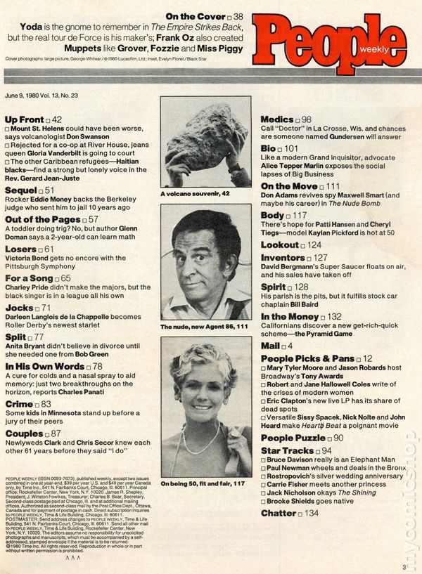 June 8, 1980. Star Wars cover and article, Star Wars strikes back nasal spray to improve memory, Don Adams cant get rid of SMART, and Mount St. Helen's: It's not over yet, and more. 8.25-in. x 11-in.; black and white; 96 pages. Cover price $0.75.