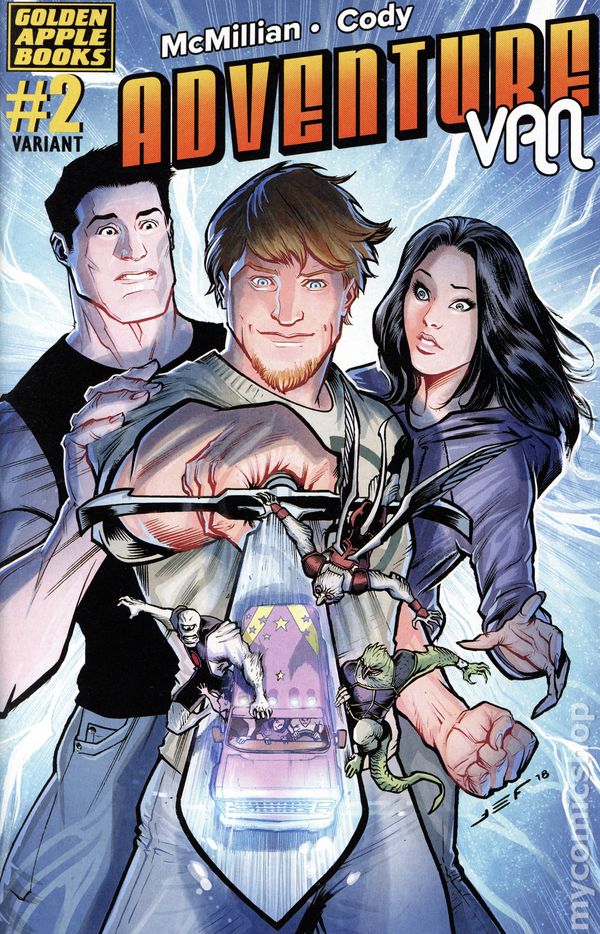 Written by Michael McMillian. Art by Ryan Cody. It's the second action-packed issue of the all-new Sci-Fi/Fantasy series by Golden Apple Books and actor/author Michael McMillian (Crazy Ex-Girlfriend, True Blood)! After his friends are ambushed by monsters, Corey Biggs makes a startling discovery about his past... and the truth is stranger than fiction! The Adventure Van revs up for an incredible journey. Let's hope Uncle Mars fixes that tape deck! 28 pages, full color. Rated T Cover price $3.99.