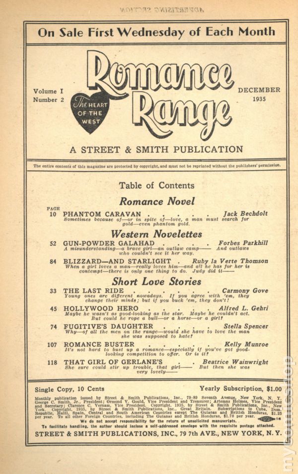 Romance Range (1935-1936 Street & Smith) Pulp comic books