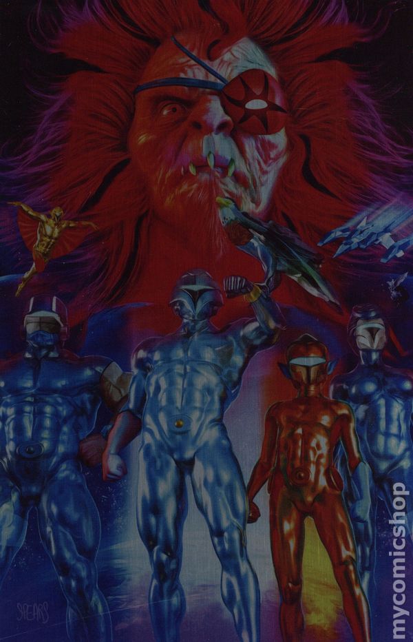 Limited 1 for 10 Retailer Incentive Variant Cover. Written by Ed Brisson. Art by George Kambadais. Cover by Mark Spears. In the nearby galaxy of Limbo, the deadly mob boss Mon*Star has escaped from his confinement on Penal Planet 10 - and he's looking to take revenge on everyone who put him there! At the top of that list is Commander Stargazer, the grizzled space cop who personally took Mon*Star down the last time he went on a rampage. To recapture Mon*Star and his gang of super-criminal associates, Stargazer must put his retirement on hold and assemble a new team of his famed bionically enhanced law enforcers - the SilverHawks! Recruited from every corner of known space by the Federal Interplanetary Force, the SilverHawks were engineered to be the first line of defense against Limbo's ruthless agents of chaos. But during Mon*Star's long incarceration, the program went dormant, and its state-of-the-art tech has drifted towards obsolescence. Now, as they take on the galaxy's deadliest lawbreakers, Stargazer's new team of untested cyborgs - including Quicksilver, Bluegrass, Hotwing, Steelwill, Steelheart, and The Copper Kidd - will face the ultimate trial by fire! 32 pages, full color. Rated T Cover price $4.99.