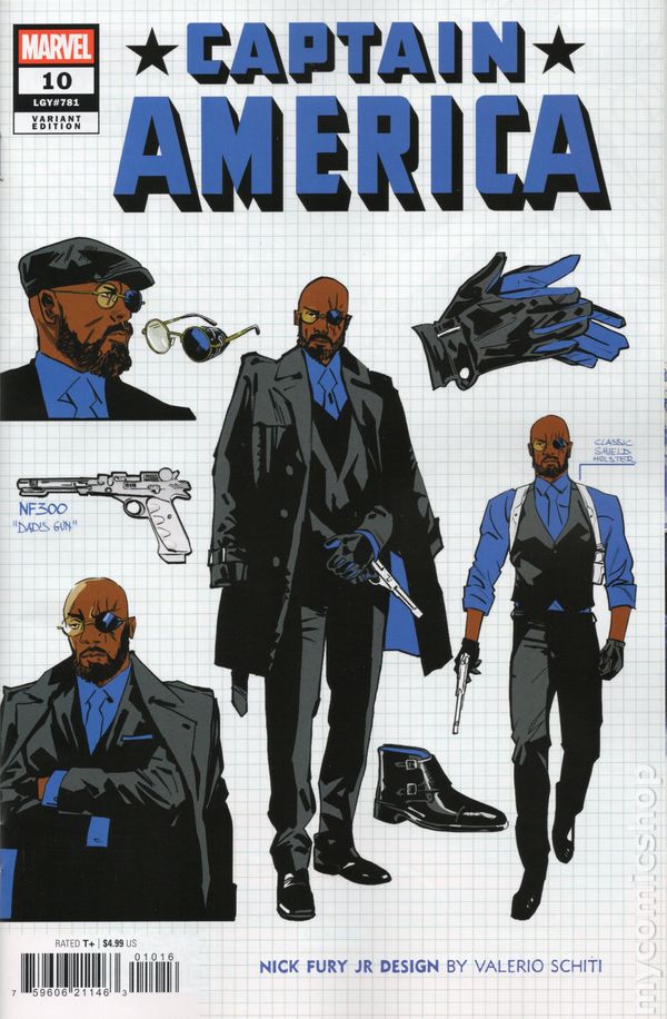 Limited 1 for 10 Retailer Incentive Variant Cover. Written by Chip Zdarsky. Art by Valerio Schiti. Cover by Valerio Schiti. A NEW ERA FOR CAPTAIN AMERICA BEGINS HERE! While Captain America slumbered in ice, the world changed - for better and for worse. Steve Rogers awakens to a reality where battles are fought in the shadows through secrets and subterfuge, and villains aren't so easy to identify. When a fledgling dictator named Victor Von Doom conquers Latveria, Steve faces a critical decision: adapt to a new kind of warfare, or forge his own path? And what will the choice he makes in the past mean for his future? Experience the untold tale of Captain America's first encounter with Doctor Doom as Chip Zdarsky and Valerio Schiti team up for a game-changing new era of CAPTAIN AMERICA! 40 pages, full color. Rated T+ Cover price $5.99.
