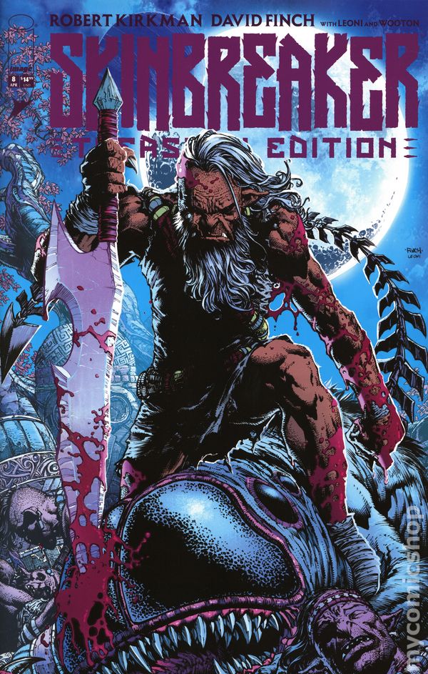 Written by Robert Kirkman. Art by David Finch, Annalisa Leoni. Cover by David Finch, Annalisa Leoni. PRESENTED IN A GORGEOUS TREASURY FORMAT ON NEWSPRINT PAPER! FOR FANS OF INVINCIBLE UNIVERSE: BATTLE BEAST COMES YOUR NEW FAVORITE SERIES! ** The dream team of ROBERT KIRKMAN** (THE WALKING DEAD_, _INVINCIBLE) and superstar artist DAVID FINCH (Batman, New Avengers) present the visionary action epic unlike anything youve ever seen. Enor has led his tribe for many seasons, but his time as Chieftan is coming to an end. He wields the mighty SKINBREAKER, but at his age, he can barely lift it. Will Enors reluctant heir, Anok, take over before their world falls to ruin? As a bloody power struggle begins, an even bigger threat lurks in the darkness beyond their village. SKINBREAKER tells the story of a people on the verge of collapse and their fight for survival as the many threats they face close in for the kill. 32 pages, full color. Rated T+ Cover price $14.99.