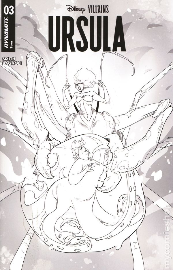 Limited 1 for 10 Retailer Incentive Variant Cover. (W) Sherri L. Smith (A) Gabriele Bagnoli (CA) Francesca Carita TROUBLED WATERS! Following a mysterious attack that claimed the powers of one of her fellow Sea Witches, Ursula travels to each of her remaining sisters to warn them of the danger. Someone — or something — is hunting the rulers of the worlds oceans, and the wily regent of Atlantica has a hunch about who the culprit might be. But before she can confirm her suspicions, the hidden assailant strikes again, leaving another throne empty and another aquatic kingdom in chaos. As she prepares to face this would-be usurper in her own home waters, Ursula begins to form a new and diabolical scheme — a bold new plan that could ultimately see her ruling over all of the seven seas! 32 pages, Teen, Full color Cover price $4.99.