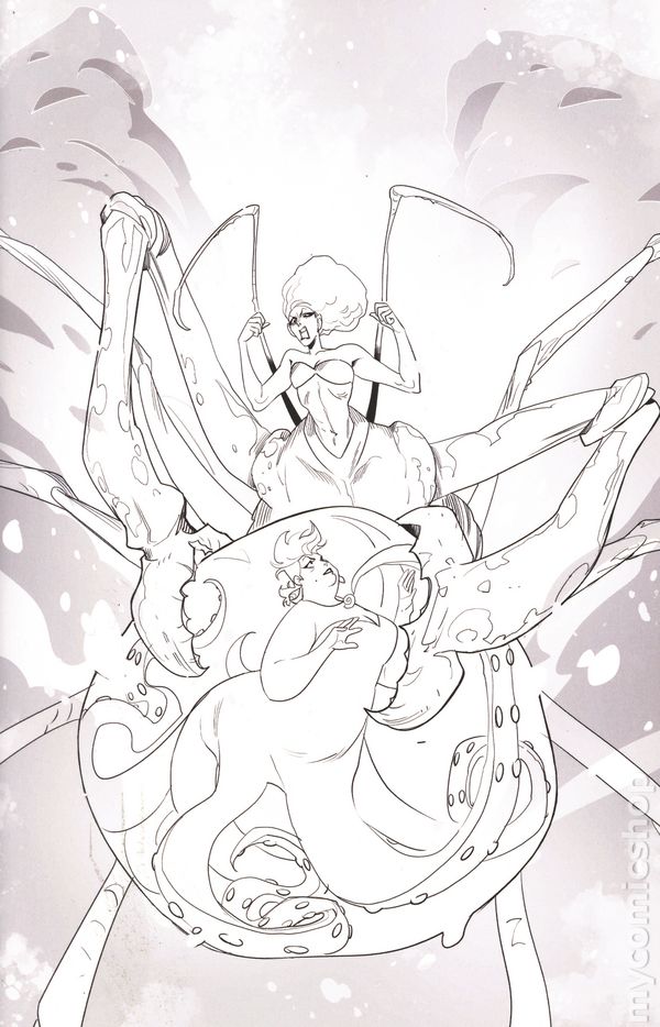(W) Mirka Andolfa (A) Gabriele Bagnoli (CA) Shatoki Shiki Written by comics superstar Mirka Andolfo! Ursula uses the last of her stored power – alongside Spinny – to confront Triton and reclaim the trident…and she succeeds! What will she attempt to do with the awesome power of the trident? Why…resurrect her sisters, of course! Cover price $4.99.