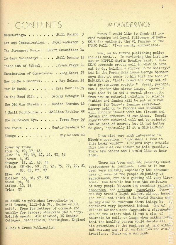 Habakkuk (1960-1994 Bill Donaho) Fanzine comic books
