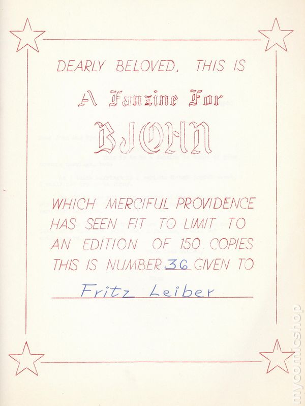Fanzine for Bjohn (1960 Bruce Petz) Fanzine comic books