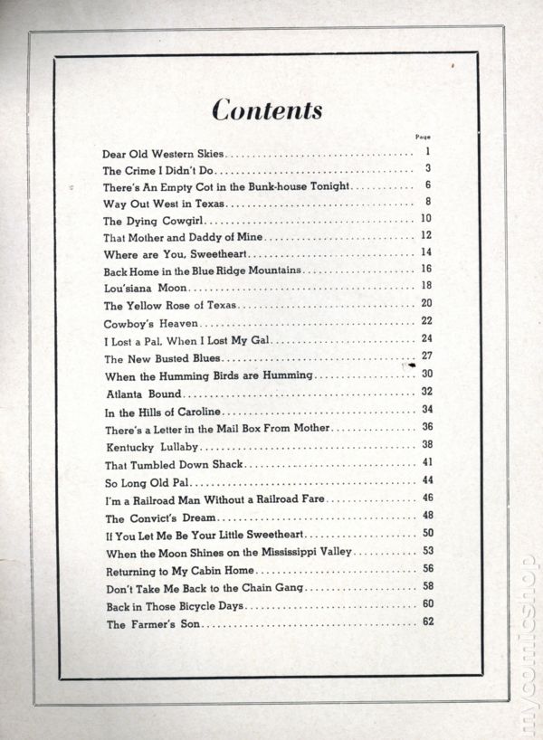 Subtitled "Sensational Collection of Famous Original Cowboy Songs and Mountain Ballads".