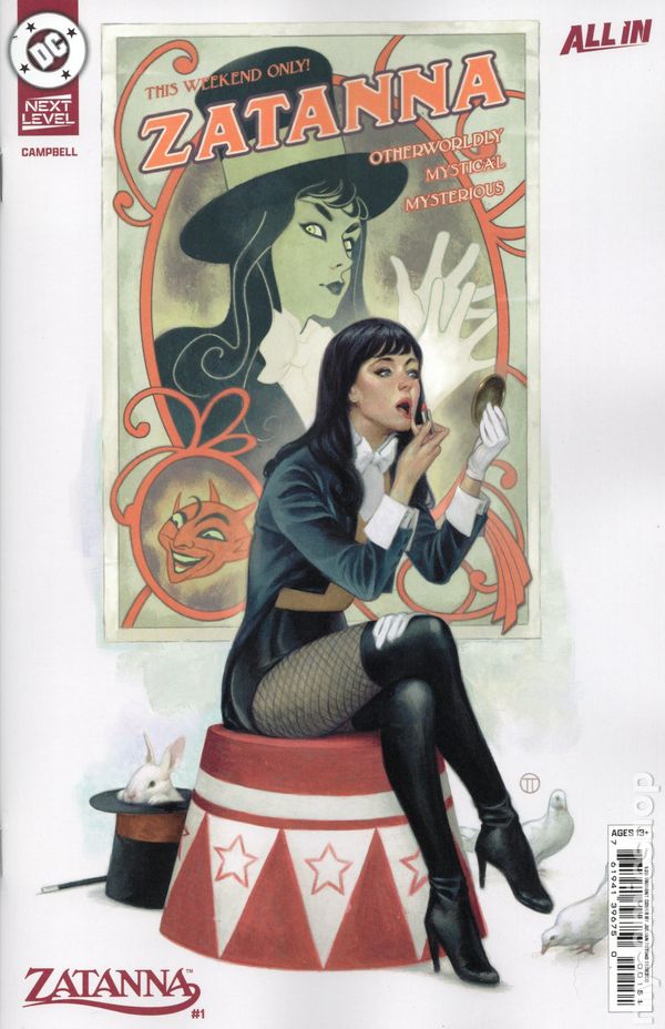 (W) Jamal Campbell (A) Jamal Campbell (CA) Jamal Campbell SUPERSTAR JAMAL CAMPBELL TAKES ZATANNA'S MAGIC TO THE NEXT LEVEL! Zatanna Zatara embarks on her greatest tour yet! As the newest and first Prime Magus in millennia, it is now Zatanna's sworn responsibility to oversee and guide the world of magic. All eyes are on her. How will she accomplish this grand task? How will she shoulder this heaviest of responsibilities? How will she confront the horrors waiting in forgotten histories? With a wink, a flourish, and a whole lot of magic! All-star writer/artist Jamal Campbell (Superman, Zatanna: It’s Showtime) is back for an encore with the mistress of magic as she finally gets her own ongoing series! Cover price $3.99.